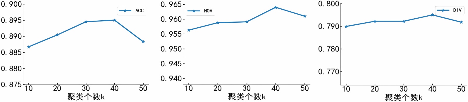 时,KSPC-ER性能最优。k过小会导致群体内知识差异大、推荐针对性不足;k过大会使单组样本偏少、群体特征不显著,均会降低推荐效果。