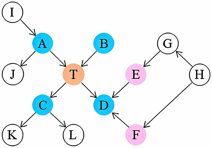马尔科夫毯主要由三部分组成,明确界定各组成部分的含义是后续MB学习的基础:一是父节点(Parents),指在因果图中直接指向目标变量T的变量;二是子节点(Children),指在因果图中被目标变量T直接指向的变量;三是配偶节点(Spouses),指子节点的父节点中除目标变量T以外的其他变量。其中,父节点与子节点共同构成PC集合(Parents + Children),是MB学习中优先识别的核心部分[4]。