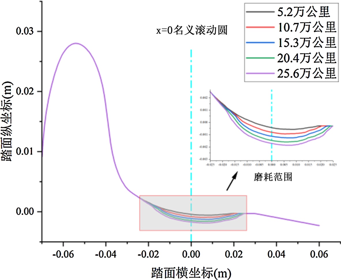 图1. 不同里程下车轮踏面磨耗统计数据[12]