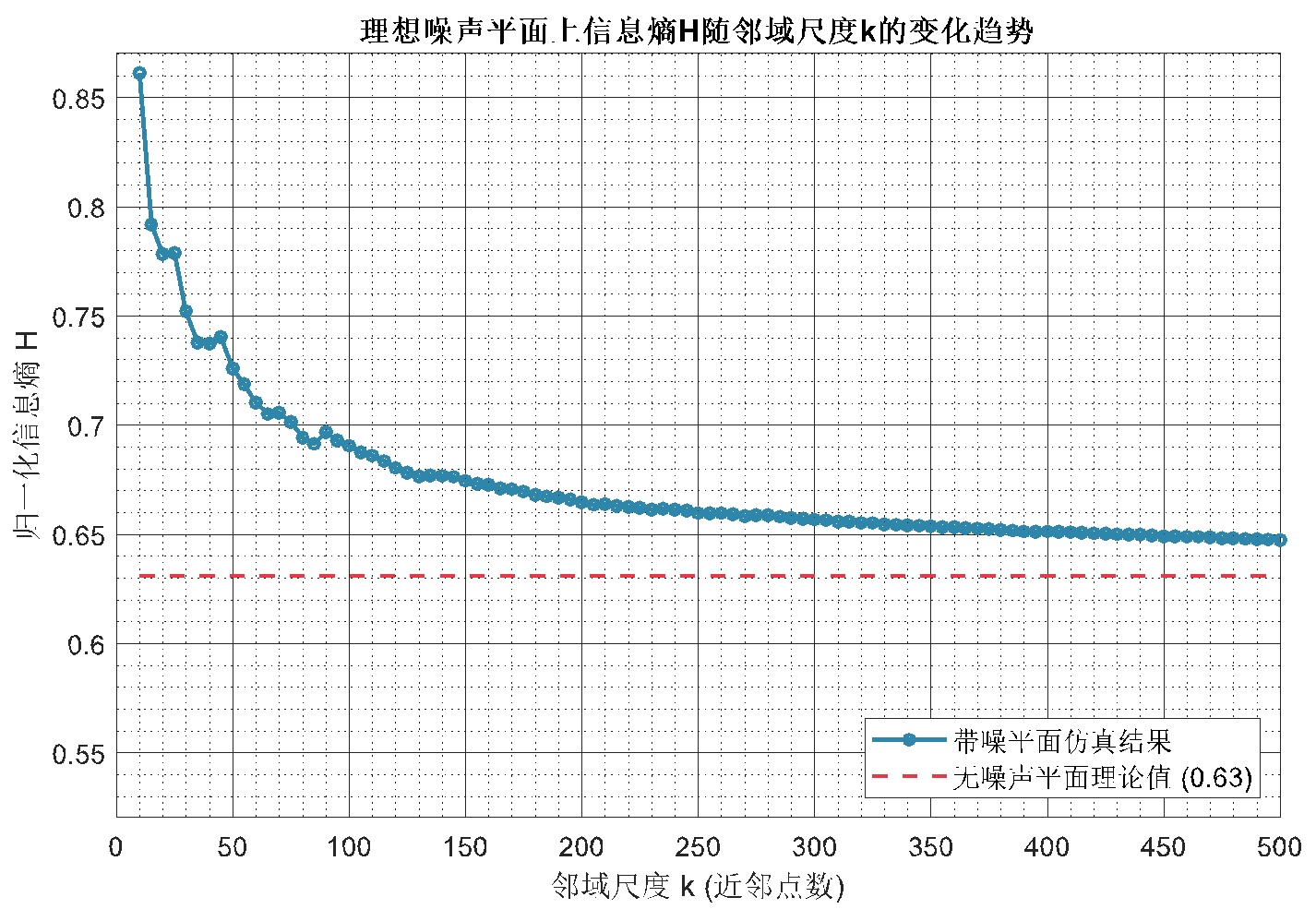 图3. 信息熵随邻域尺度的变化趋势(理想噪声平面)