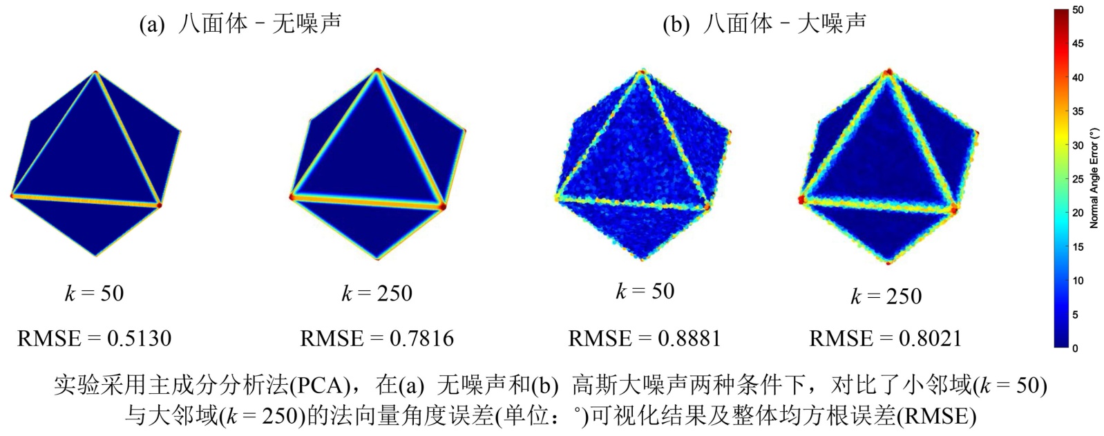 图1. 固定邻域尺度对法向量估计精度的影响