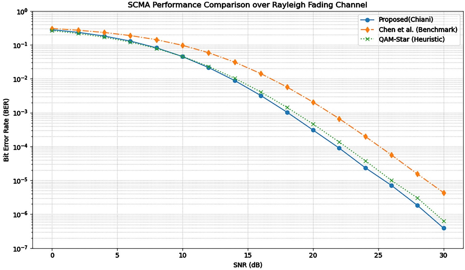 图3. 所提出码本与其他两种码本的误码率对比