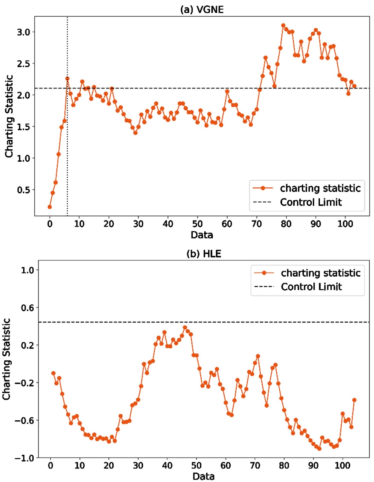 图2. VGNE和HLE控制图用于阶段II观测数据的监控