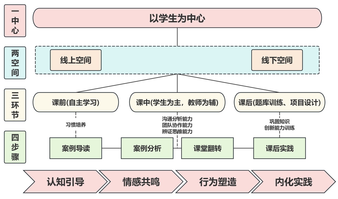 图3. “一中心、二空间、三环节、四步骤”案例式教学模式