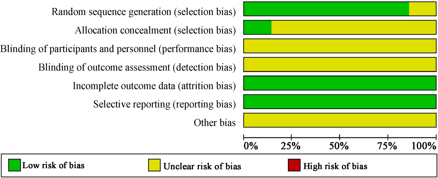 图2. 针灸治疗甲状腺癌术后焦虑抑郁状态随机对照试验文献的质量评价