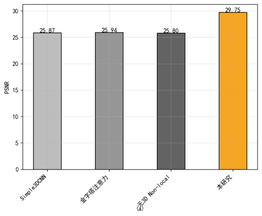 为应对3D Non-local操作固有的计算复杂度挑战,本研究在键与值变换路径中引入了空间子采样策略。这一设计是模型得以实用的关键。理论分析表明,注意力权重的计算更依赖于特征间的语义相似性,而非绝对的空间位置精度。因此,对键和值特征进行适度的空间下采样,能在基本保持注意力分布有效性的前提下,将计算复杂度显著降低约75%。实验验证表明,采用此优化策略的模型在PSNR与SSIM指标上与未采样的理论版本性能相当,但推理效率大幅提升。这体现了本方法在模型性能与计算效率之间取得的巧妙平衡,使得强大的全局时空注意力能够应用于高分辨率视频序列的实时或准实时处理场景。