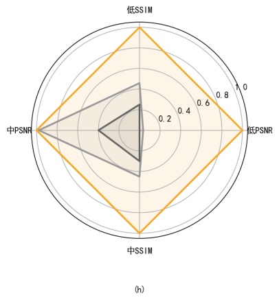 进一步观察(e)所示的基于金字塔融合结构的复原结果可以发现,该方法在一定程度上增强了图像的局部细节,但在处理如房檐、窗框等高频直线特征时,仍然容易产生不自然的结构断裂与残留伪影,部分边缘区域呈现出不连续或轻微拉伸的现象。