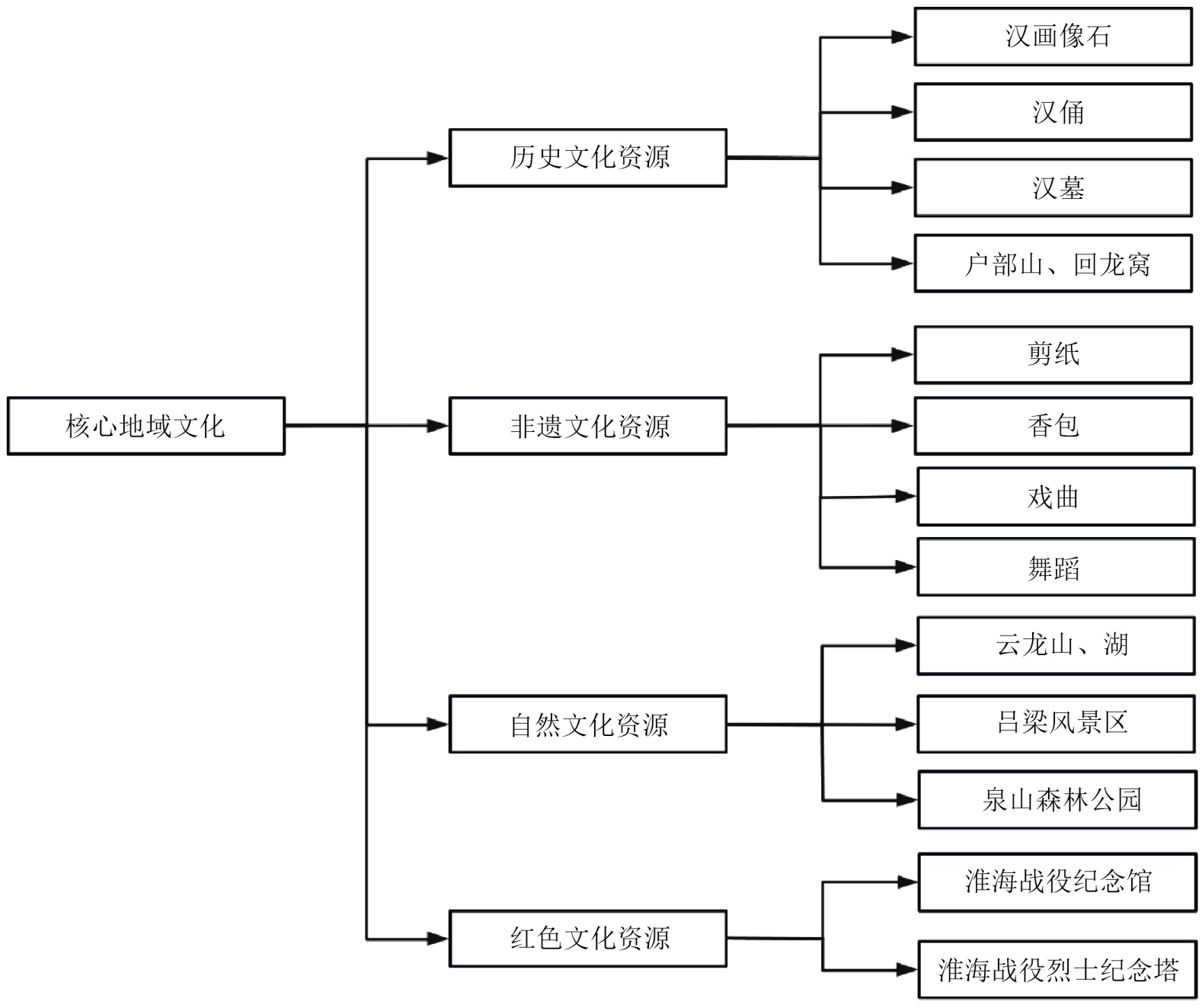 徐州有六千多年的文明发展史和两千多年的建城史,所处地域历史源远流长,文化多样,古迹众多[3]。因此,拥有丰富的文旅资源,涵盖历史文化、红色文化、非遗文化、饮食文化、方言文化等多个维度(图1)。