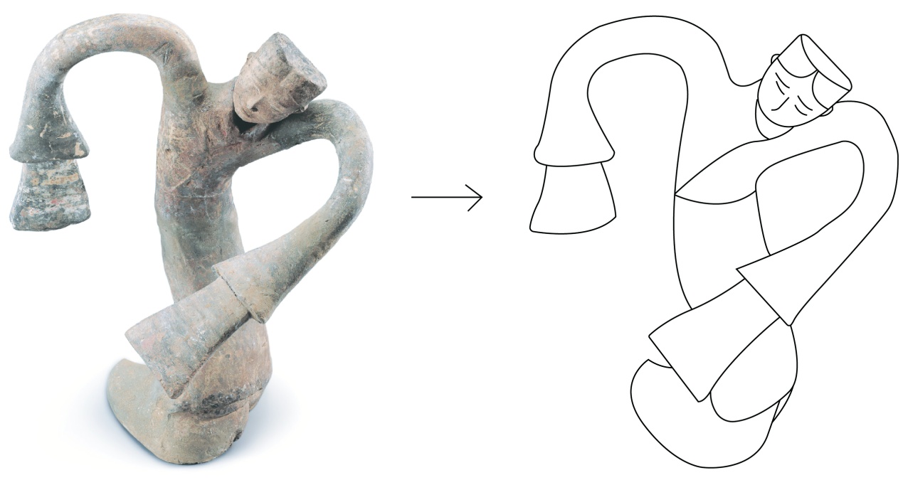 Figure 2. Extraction of the contour of the female dancing figurine wearing a pottery wrapped-around dress from the Western Han Dynasty