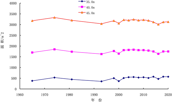 选定历年35.0、40.0、45.0 m三个同水位级面积点绘过程线图(见图4),结果表明新江口站同水位下面积变化不明显,三峡工程蓄水之后趋于稳定。