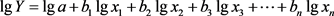 式中a、b1、b2、b3、bn为待定系数,以线性函数转化实现,对式(3)两边取对数得: