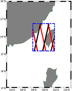 从NASA网站下载了2008年1月至2018年1月这十年的台湾海峡数据共1219轨,研究区域卫星观测轨迹如图1所示。本次获取数据方形区域为117.9˚E~121.9˚E,21.5˚N~26.2˚N,包含的范围主要为台湾岛及其周边海域,主要为台湾海峡地带。台湾海峡为我国重要渔场之一,且是贯通中国南北海运的要道。通过对该海域的大气气溶胶组成信息进行遥感探测,对掌握该海域的大气环境特征有一定参考价值。