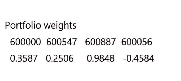 时,一个负的权重表示卖空该种股票,而卖空则是指投资者从别处借来了相当数量的某种股票,并于规定时间归还同样数量的某种证券。由于我国法律禁止自由卖空,使得权重均大于或等于零。当知道了四支证券的组合收益