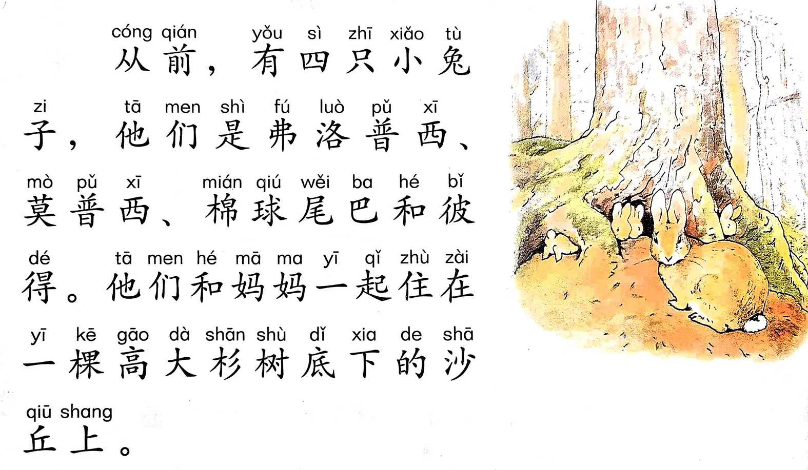 原文:They lived with their Mother in a sand-bank, underneath the roof of a very big tree.