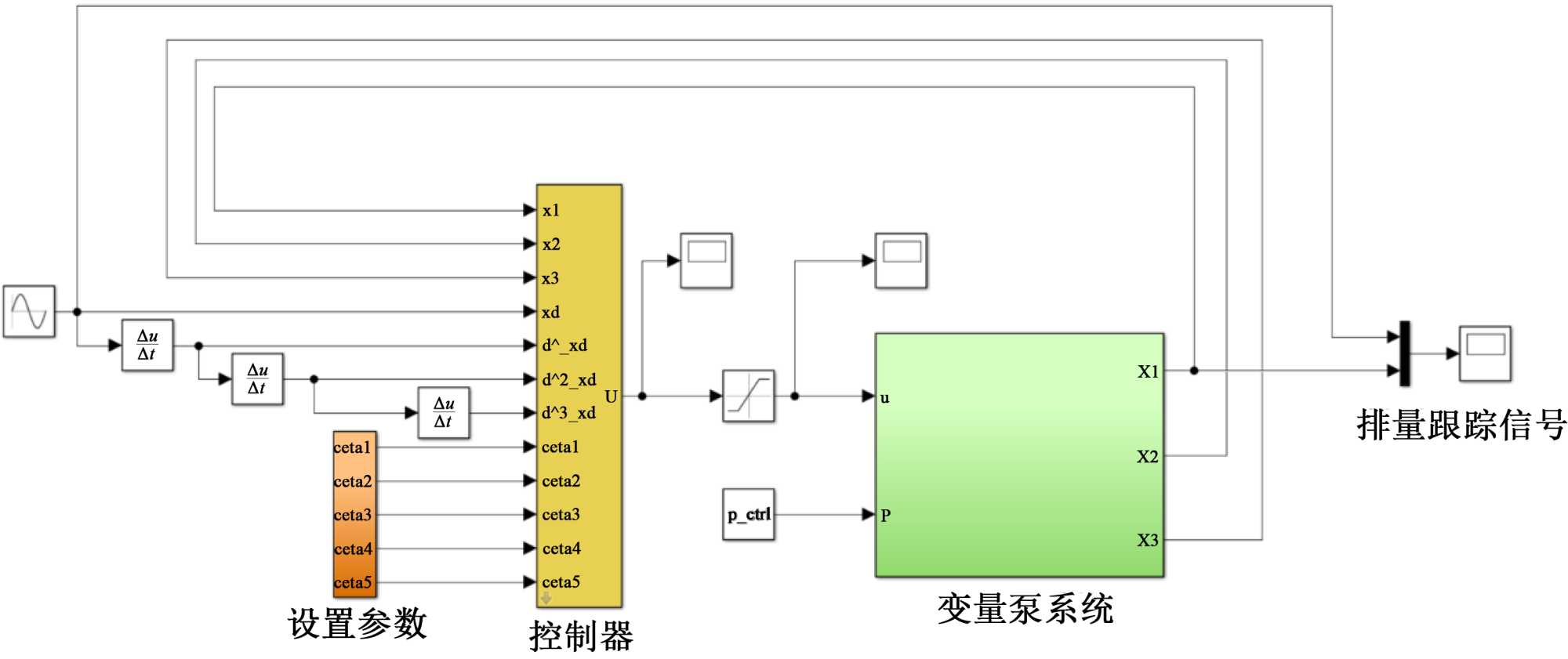 Figure 5. Mathematical model of a sliding mode controller combined with a variable pump
