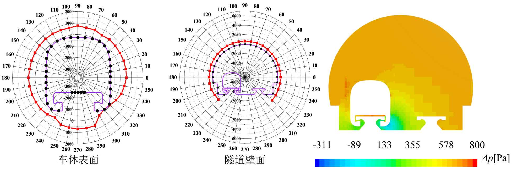 图13. JM5截面车体表面与隧道壁面压力变化对比