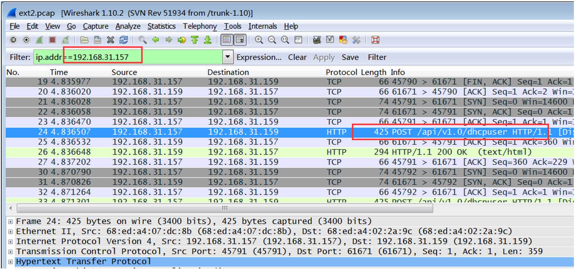 通过DHCPcapbuf来查看MAC获取,查看读取DHCP接口是否正常,通过Radius服务器抓TCP包查看DHCP接口传送终端信息是否正确,其中包含终端类型,如图4所示: