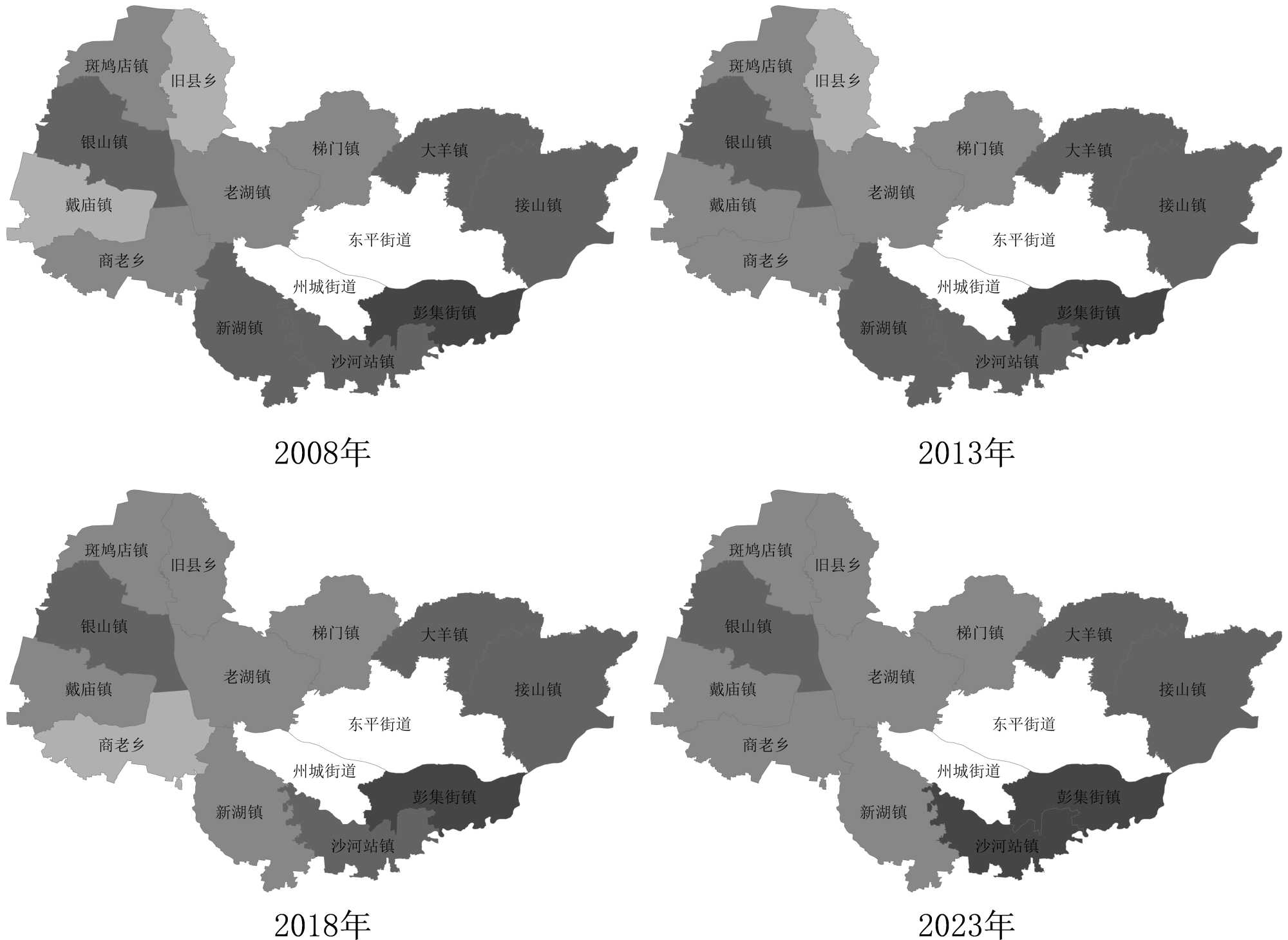 图8. 东平县2008至2023年间乡镇空间布局类型对比图④