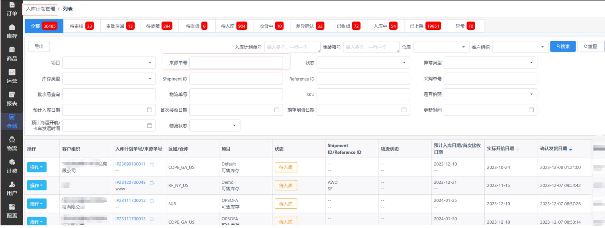 平台二关于跨境电商ERP系统中仓储模块,完成业务中仓库入库、库存、出库等相关页面操作。入库前所需对SKU产品编码的录入→订单导入→入库计划单(创建、审核)→入库单(创建、确认);库存内产品主要是对相关订单产品进行出库/移库/调运/转运/等操作;出库中业务所关注的是产品条码、订单条码、存量、发出量等数据对比。以上业务流程中皆存在复用功能节点,对交互动作反馈性与界面跳转后,所存在的信息需要系统给予业务人员直观动态显示。