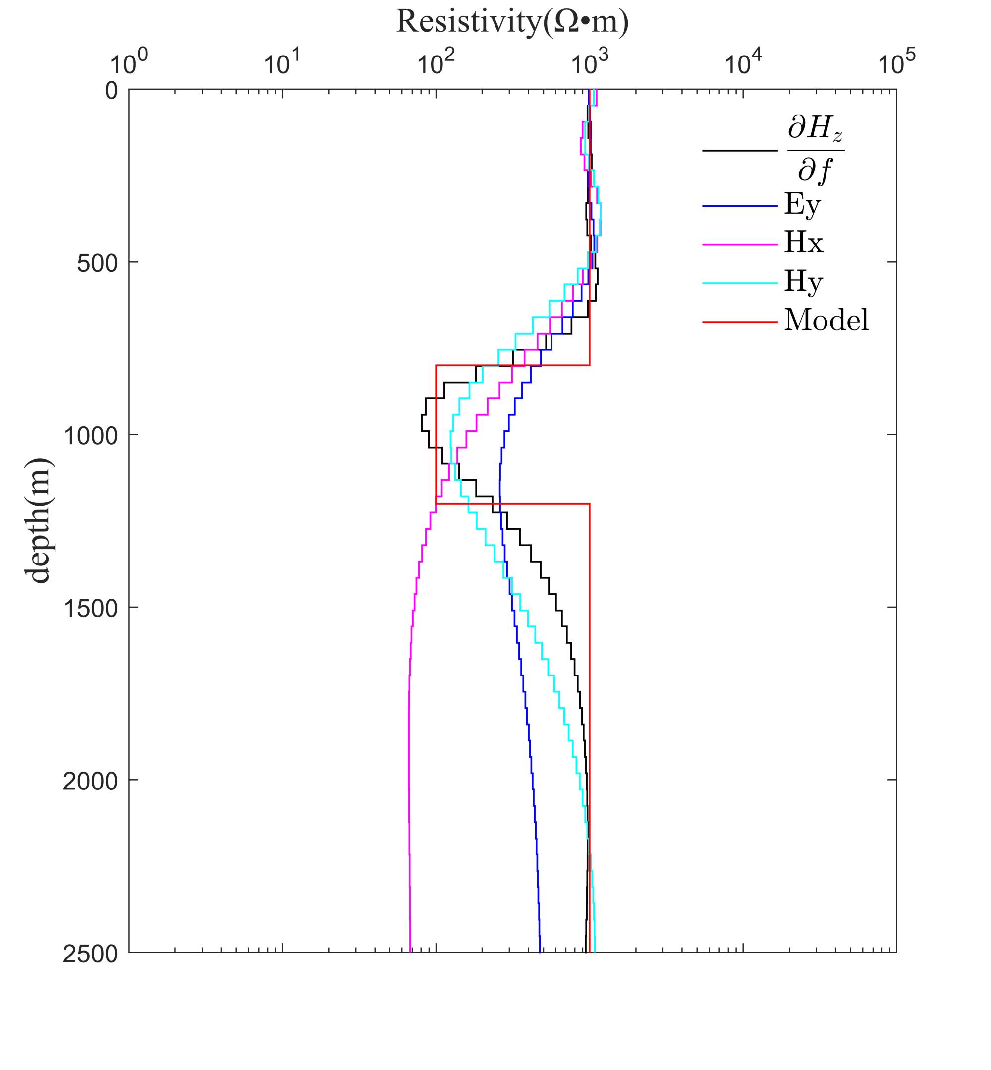 本文则从另一种角度出发来消去总场中的一次场实现近场源下的一维反演。电偶源产生的电磁场中,一次场是由场源直接激发的,与场源频率无关;而二次场则是由地下介质在谐变电磁场作用下感应激发的,与场源频率密切相关。通过对磁场频率求导,则可以完全消去总场中的一次场,只保留磁场二次场的频率导数。在理论上是消去一次场的另一种可行性方案。本文正是基于上述分析,从电磁场理论原理出发,分析限制近场源反演的因素,提出了磁场频率梯度反演方法。