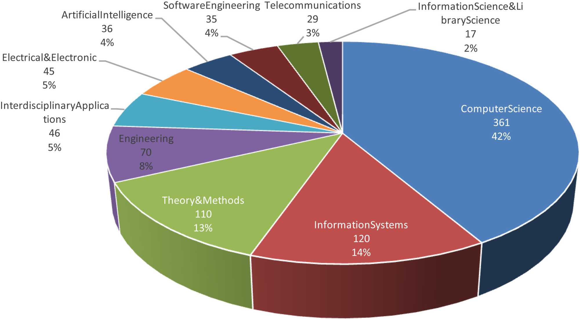 Figure 3. Top 10 discipline distribution of WOS database data asset literature from 1997 to 2024