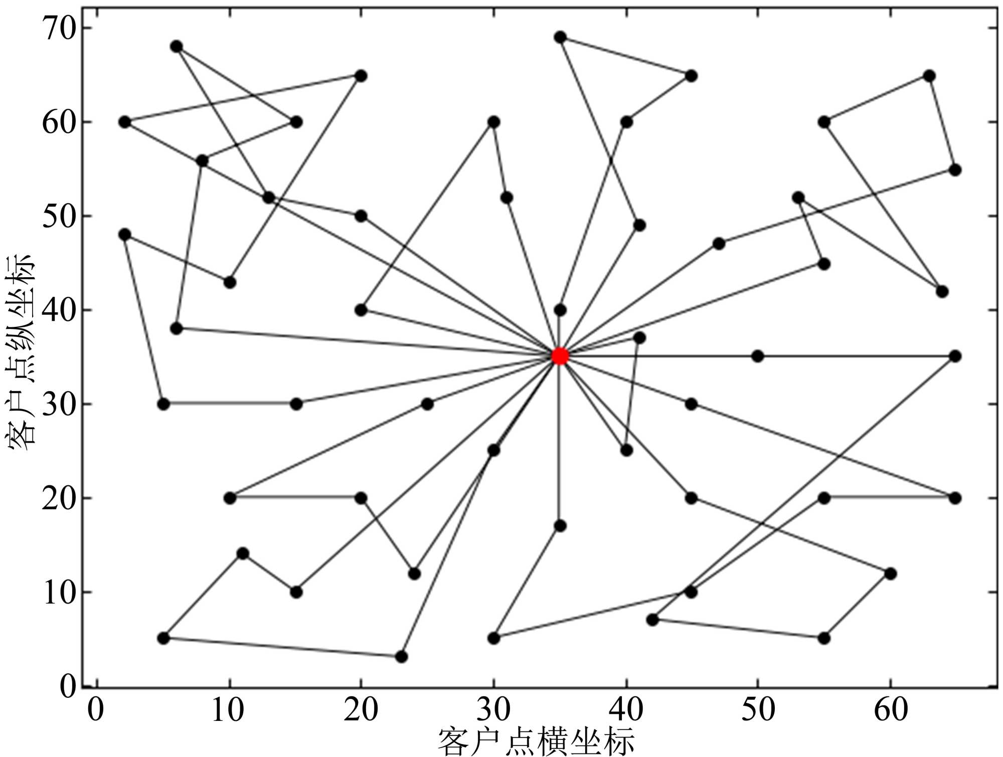 Figure 6. ALNS-IDBO serves 50 customers at C203