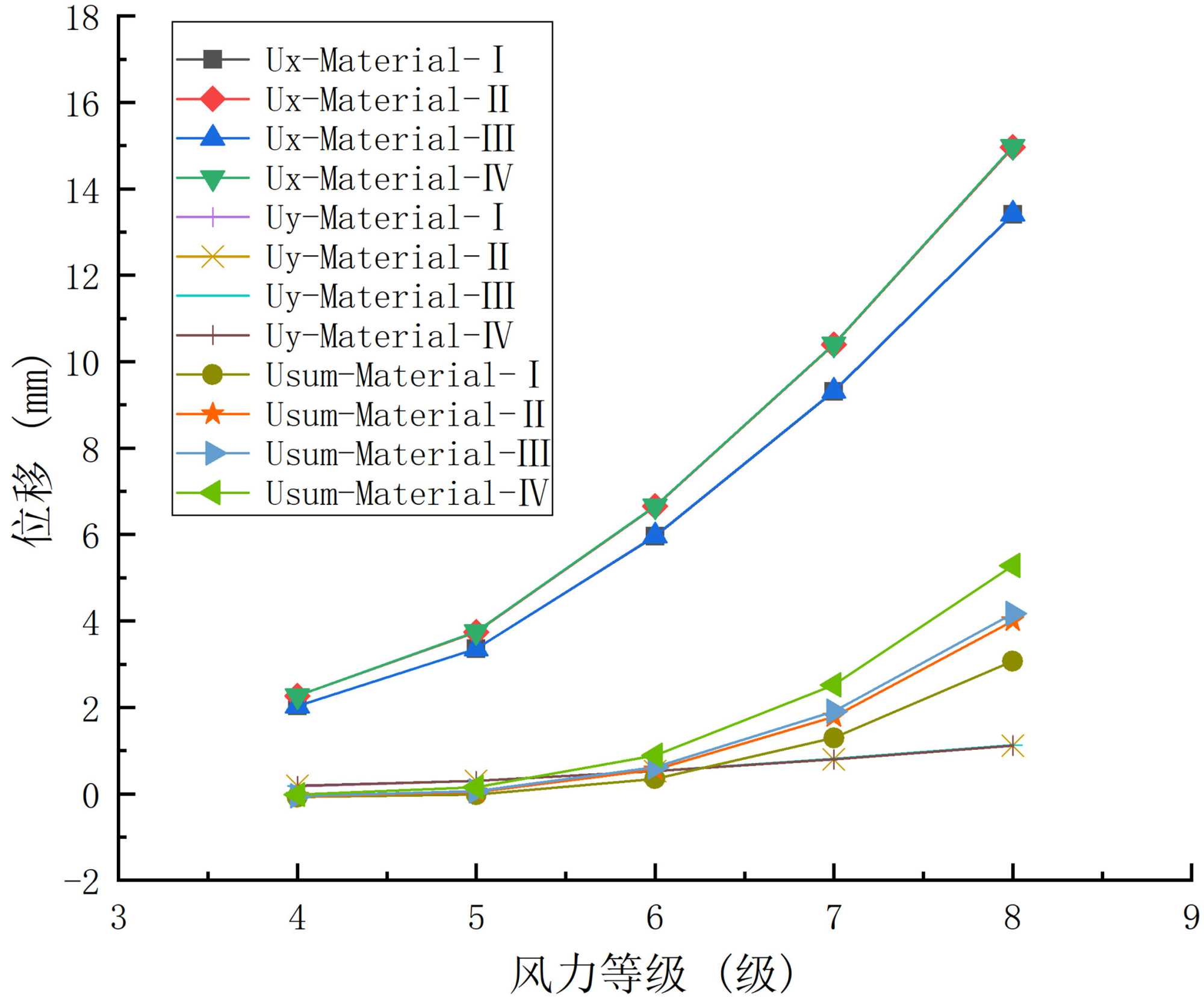 Figure 10. Displacement diagram of XOY plane under different wind levels