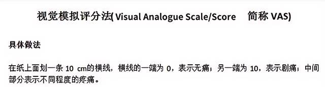 “0 cm”对应不痛,计0分,“1 cm~3 cm”对应疼痛轻度,能够忍受,计3分,“4 cm~7 cm”对应的疼痛强度为中度,计4分,“8 cm~10 cm”则对应的疼痛强度为重度疼,不可以忍受,计5分。