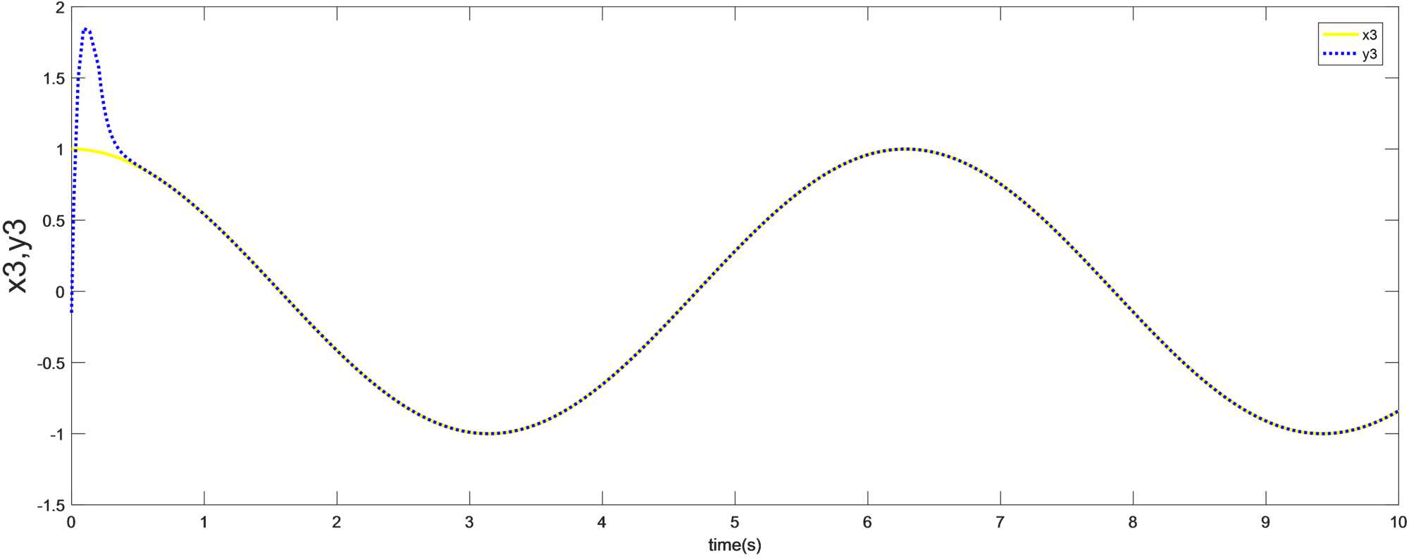 结果表明,驱动系统与响应系统从任意初始条件出发,在控制器的作用下达到逐步渐进稳定状态,进而实现同步。
