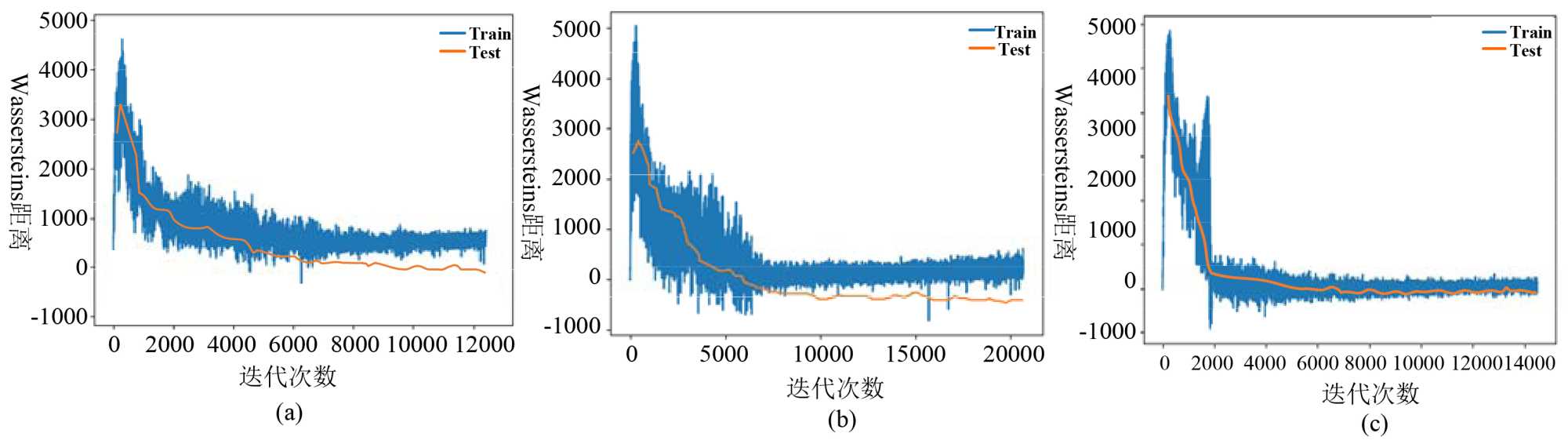 从图5(a)和图5(b)可以看出,GAN容易出现明显的过拟合。此时模型能较好地匹配训练数据,但不能匹配验证数据。相反,从图5(c)中,我们可以看到,对于训练集和验证集,判别器损失以几乎相同的趋势持续下降,这表明我们的方法在用于场景生成时比其他两种方法更不容易出现过拟合。这表明本文提出的生成方案在小样本数据上也同样适用。
