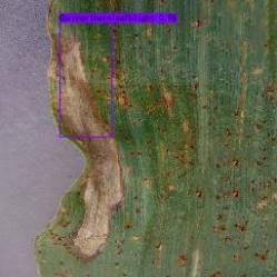 使用Faster-RCNN算法完成对数据集的训练后,生成迭代100次的权重文件,通过选取最优的权重文件对玉米叶面病害进行检测识别。识别后的效果如图3所示。