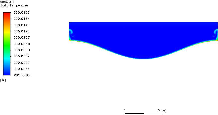 图4给出高度为1.5,长度为8,振幅为0.5的,周期个数为1的不同时刻的温度云图,初始阶段,边界层逐渐增长,羽流从下壁面最高点的波峰处开始产生,这是由于波峰离上表面更近,吸收到的辐射更多,温度更高,于是羽流先从此产生,类似于烟囱的抽吸效应。抽吸效应是指烟囱内外气体温度不同而引起气体密度差异,即烟囱抽力,它克服阻力推动烟气流动,在烟囱底部产生负压,形成抽吸效果。随后下壁面的其他地方也开始产生羽流,羽流逐渐上升,产生的羽流逐渐涌到上表面开始下沉,随着时间的发展,由于羽流的穿透高度为1,对于高度为1.5的模型,不能完全穿透,逐渐出现温度分层结构,上方是导热区,下方是混合区,到达准稳态阶段,分层明显。