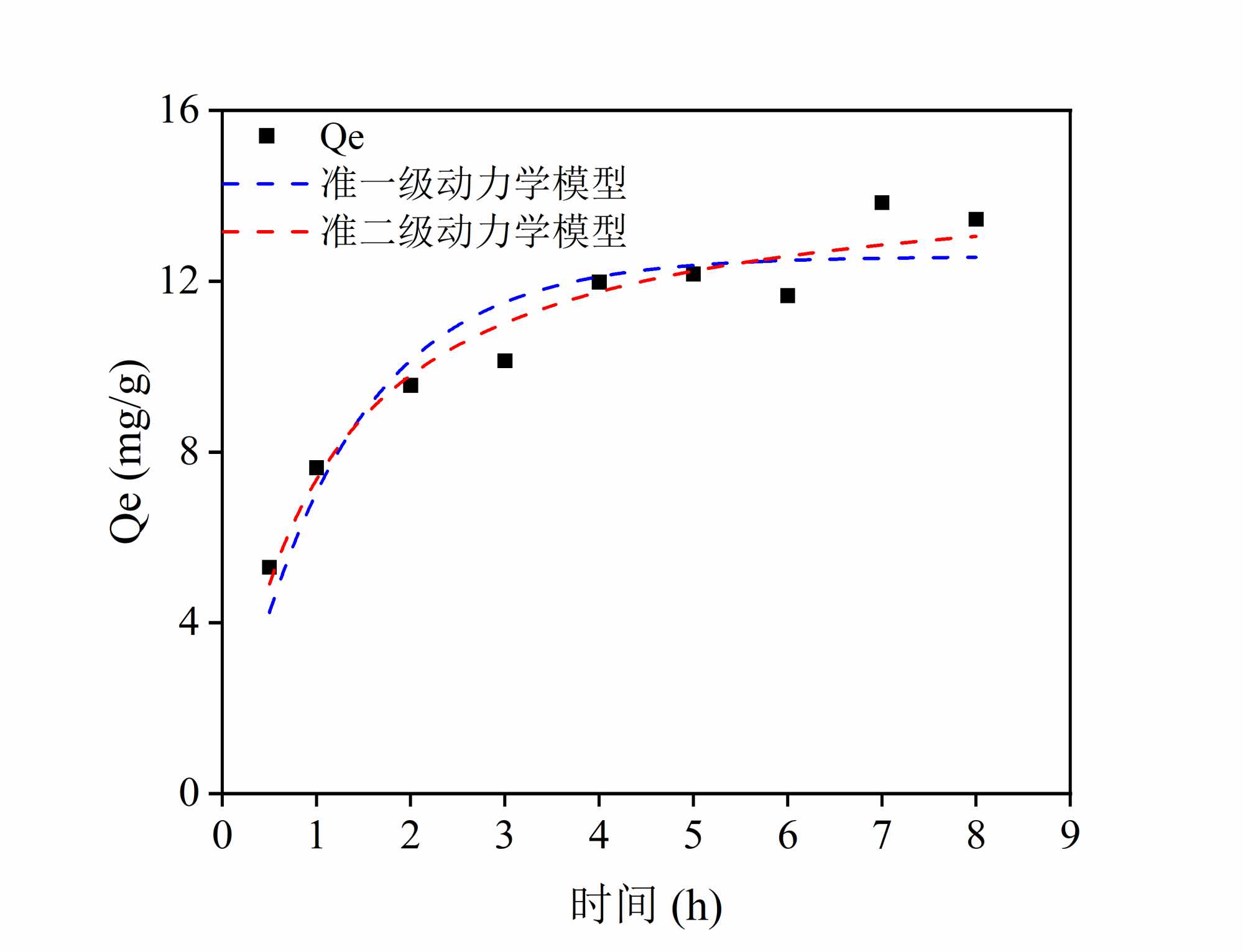 采用准一级动力学和准二级动力学模型对活性焦吸附试验结果进行拟合,研究活性焦吸附过程的控制步骤。准一级动力学模型假定吸附过程受扩散作用控制;准二级动力学模型描述内扩散,表面吸附和液膜扩散等过程。