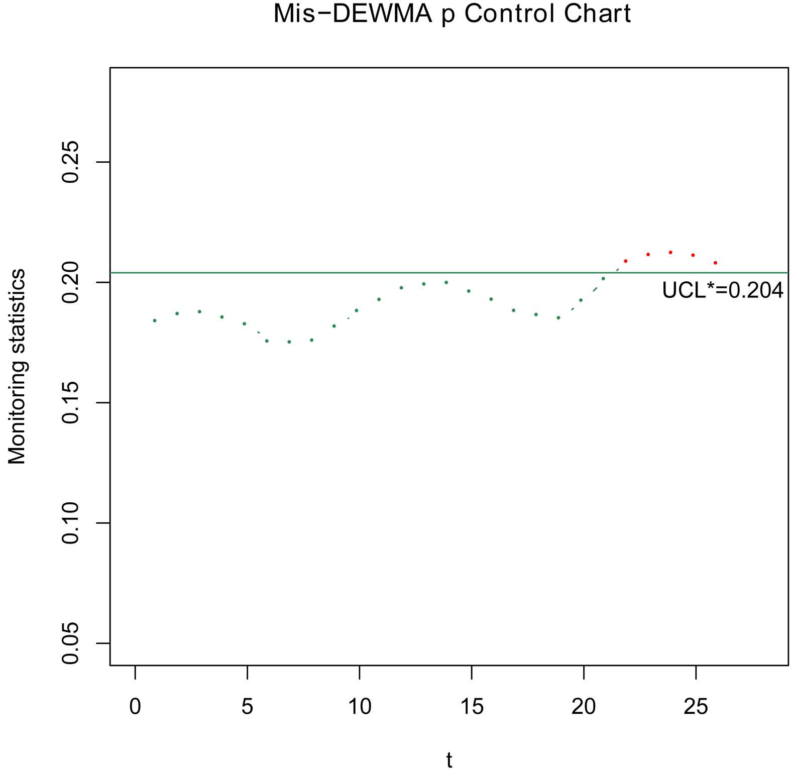 的值,Mis-DEWMA p图的