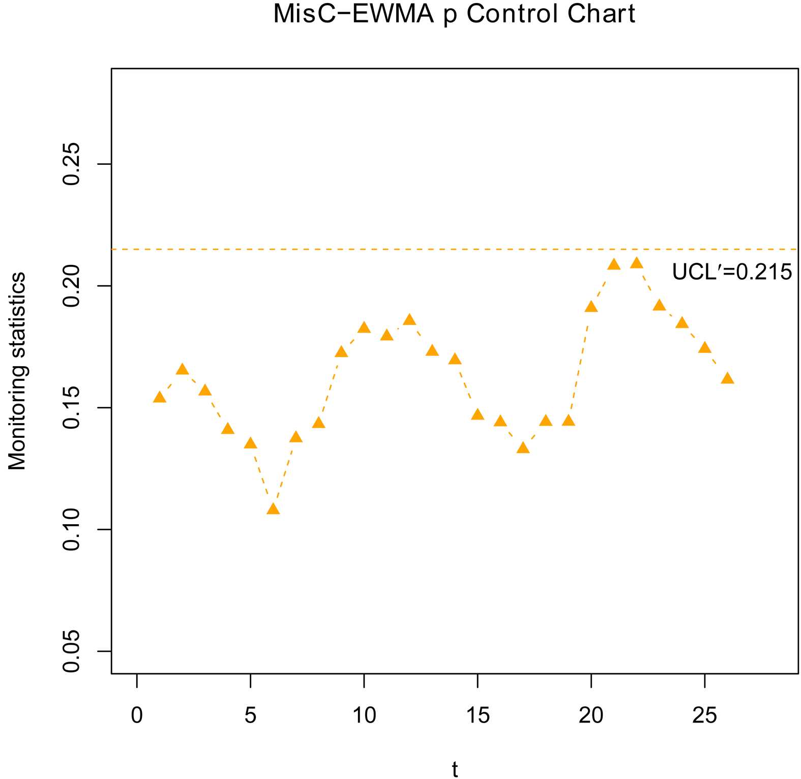 为控制限系数,本文称此图为带有误分类数据建模的(Mis-DEWMA p)控制图,当