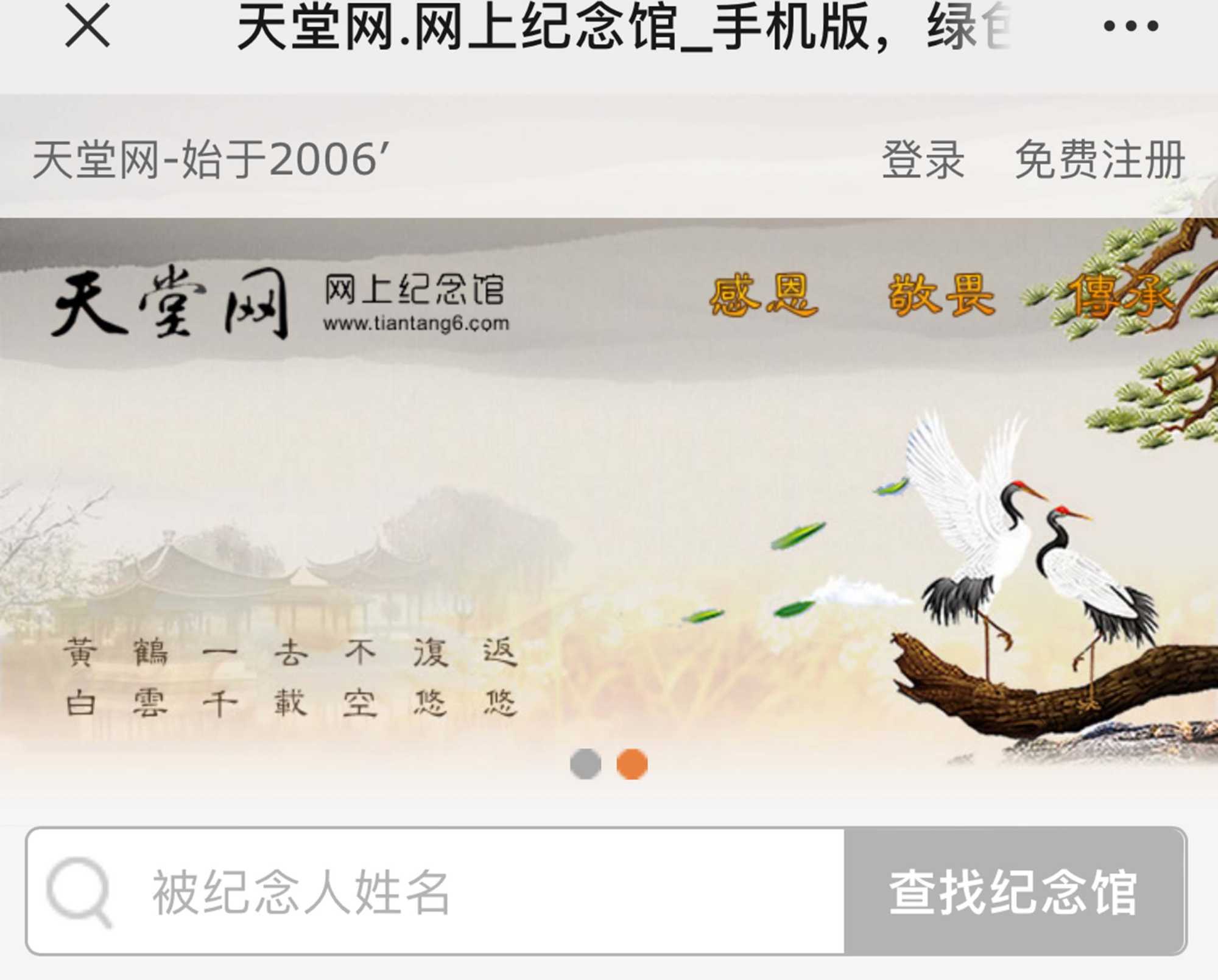 图2. 天堂网——网上纪念馆网页端主页①