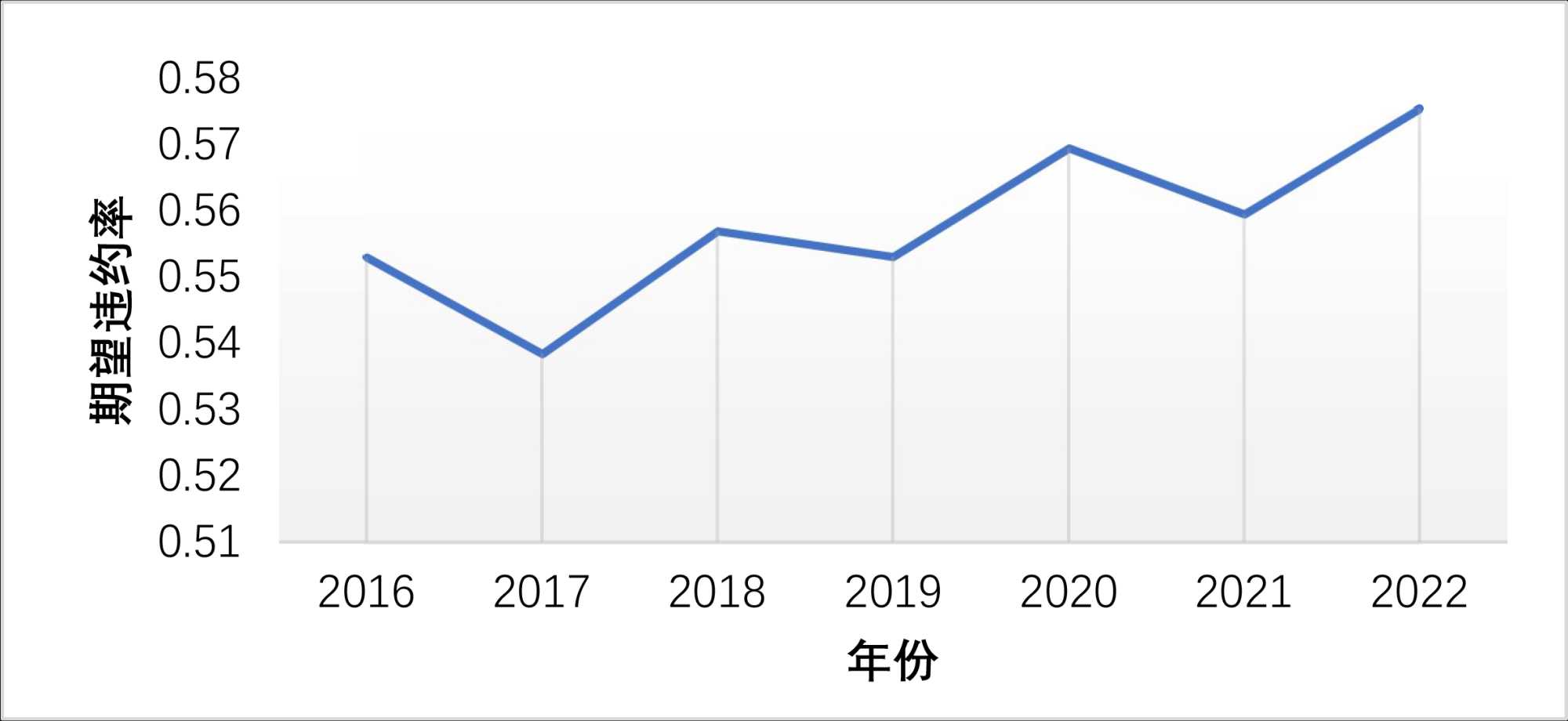 信用风险的影响,并对估计结果进行了稳健性检验。发现在2016~2022年内,样本银行的违约距离呈下降趋势,违约概率和信用风险水平有所上升,虽以年均气温标准偏离度维代表的气候风险指标对银行信用风险的影响并不显著,但以年降水量标准偏离度为代表的气候变化对银行信用风险产生显著的负面影响,且在调整基准期窗宽的稳健型检验中表现仍然显著,从而得出结论:气候变化会增加银行的信用风险水平。
