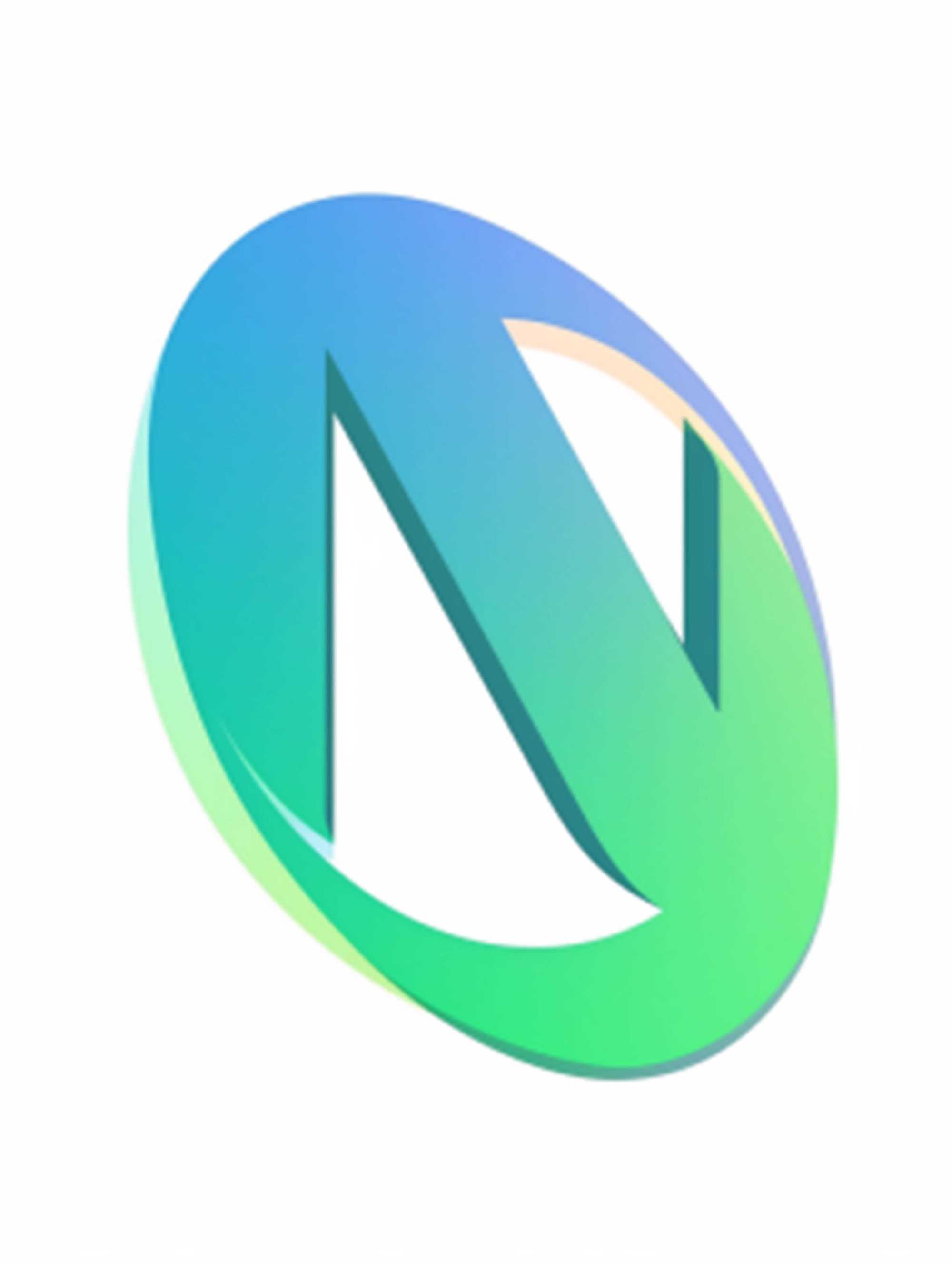 letter N logo, cute, round corner, Button/sprout shape, Completly cute font, super cute and round, curved edges, flat round typography, no shading detail, outline style, minimalist, minimal, simple, cute, round, with a gradient of blue, pink and green |