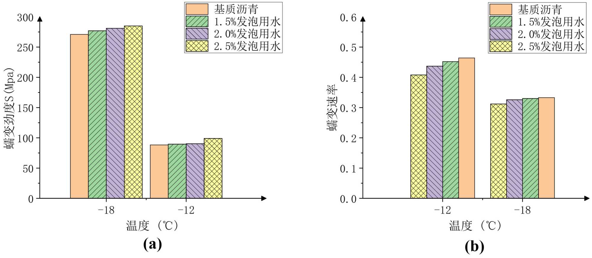 图8. 沥青BBR试验结果:(a) 蠕变劲度;(b) 蠕变速率