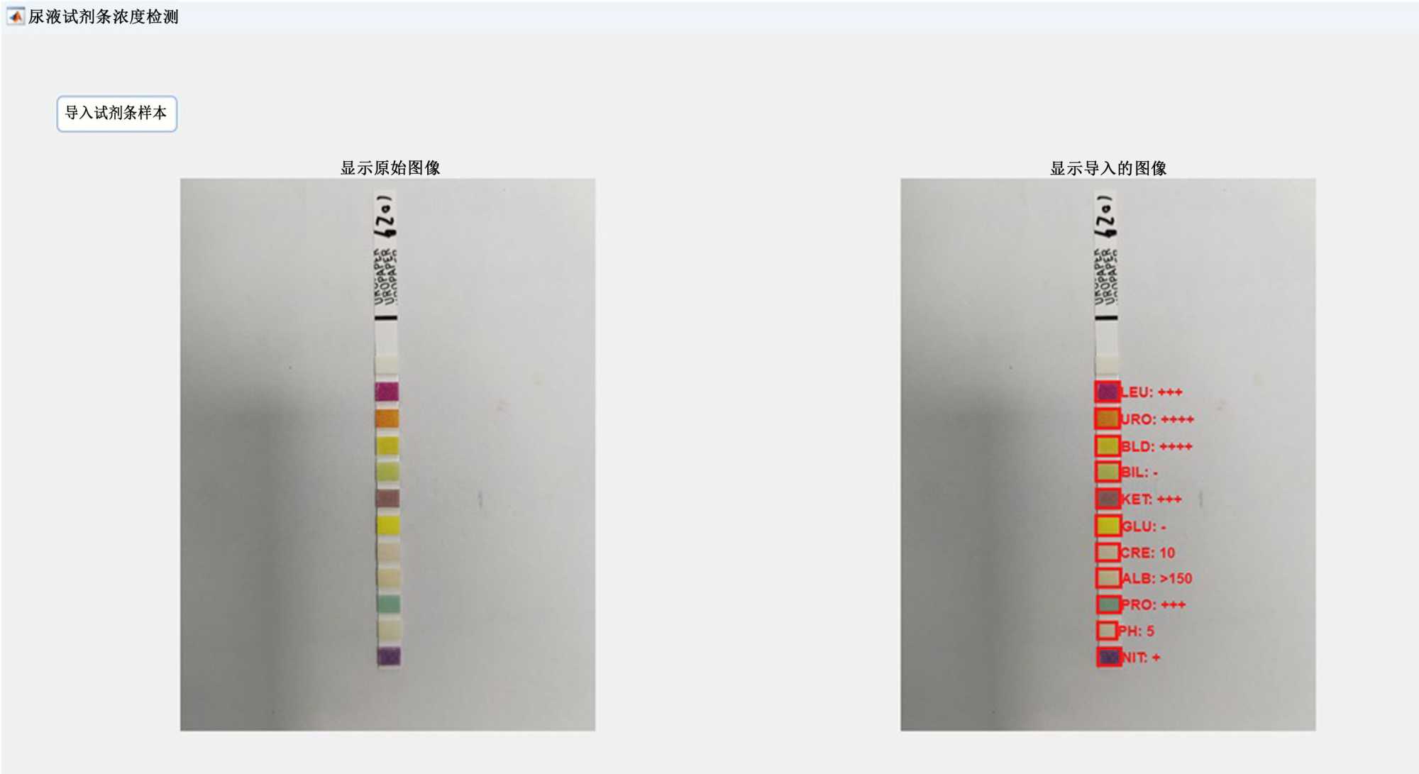 图7展示了一个完整的尿液11联试剂条图像检测系统的实现过程。通过导入试剂条样本图片,加载训练好的11个尿液指标模型,该系统能够自动检测和分析尿液样本的多种成分浓度,提供快速而准确的检测结果。这种系统的应用不仅能够提升临床诊断的效率,还能够降低误诊率,为医疗人员提供更加可靠的数据支持。