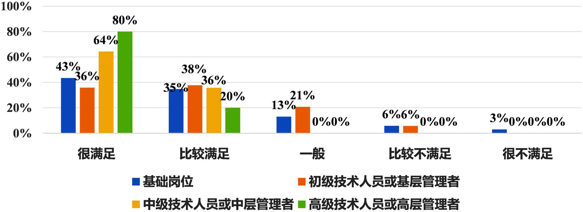 图17. 不同职位毕业生认为培养目标要求的能力对自身工作的满足程度