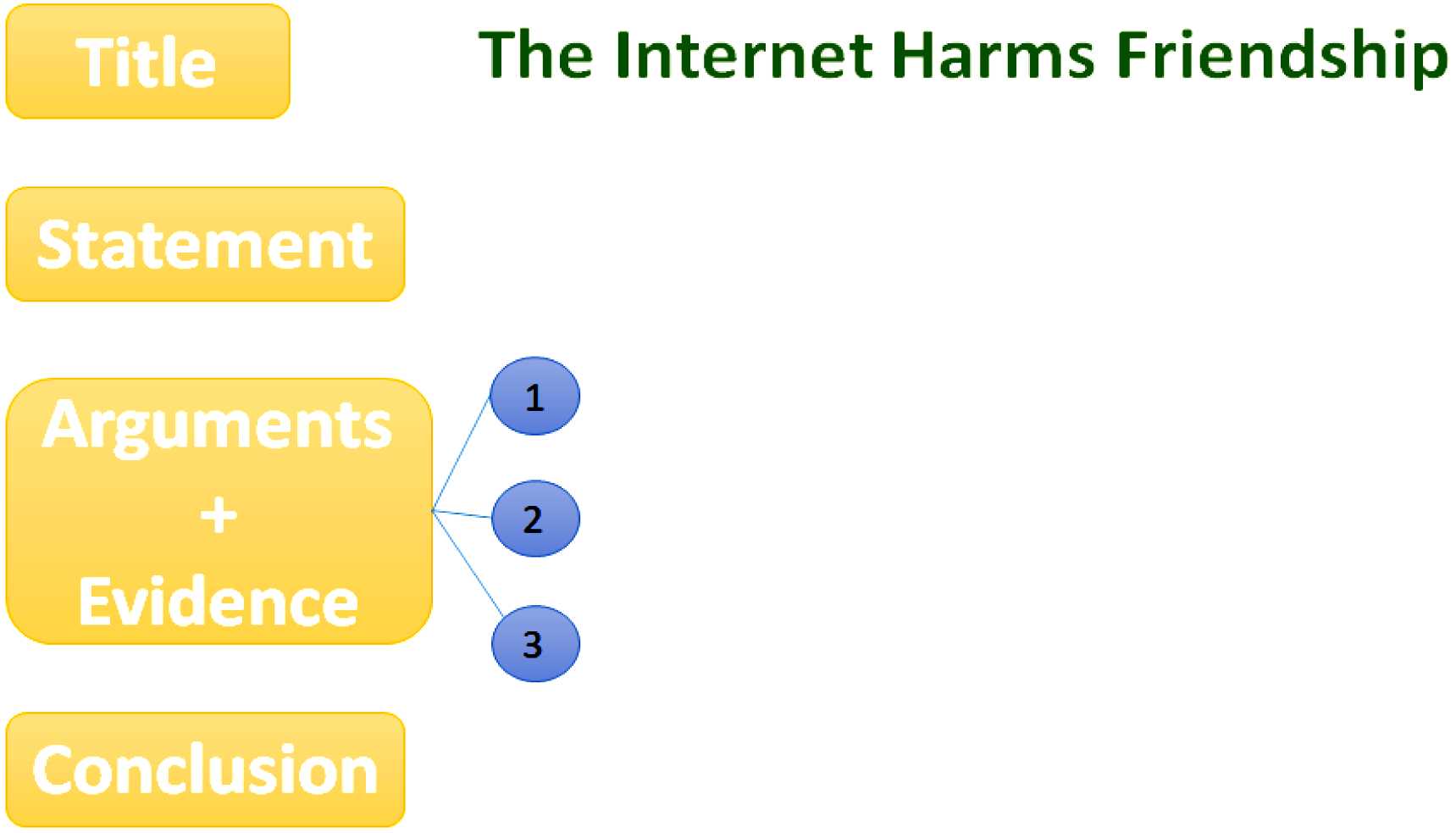 班级举行英语辩论赛,辩论的题目是“互联网是否会危害友情”,请你自由选择持方并发表你的观点及理据。