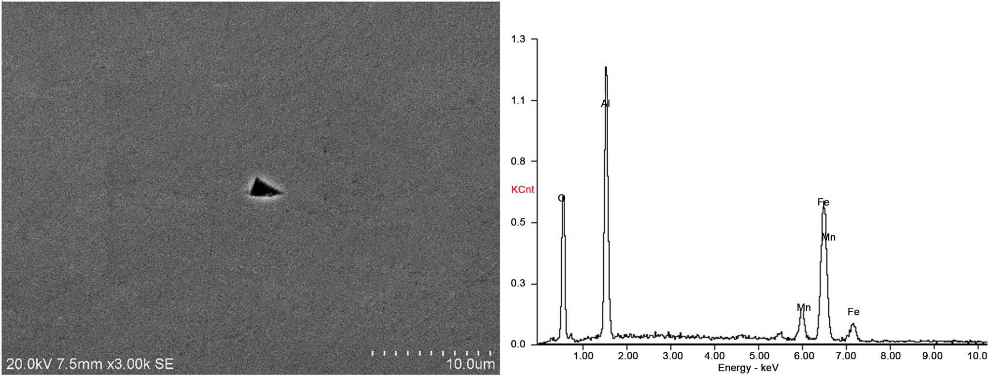 图7. 高锰钢中氧化物夹杂的SEM/EDS图像