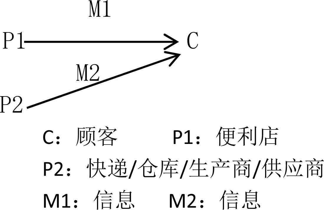 一般顾客在线上下单后,都希望能够快速地收到货物,或是能够享受到更广范围的物流服务,但根据之前的调研结果显示,目前便利店的物流服务并未得到消费者的满意。基于服务设计的作用效果进行深入剖析,尽管物流服务接触点被纳入完整模型之中,然而其内部各要素间的相互作用与影响尚显不足。鉴于此,结合图3所示内容,分析物流接触点各要素,如图7,其中顾客要素C是顾客,媒介要素M是物流信息,服务提供者要素P是便利店。