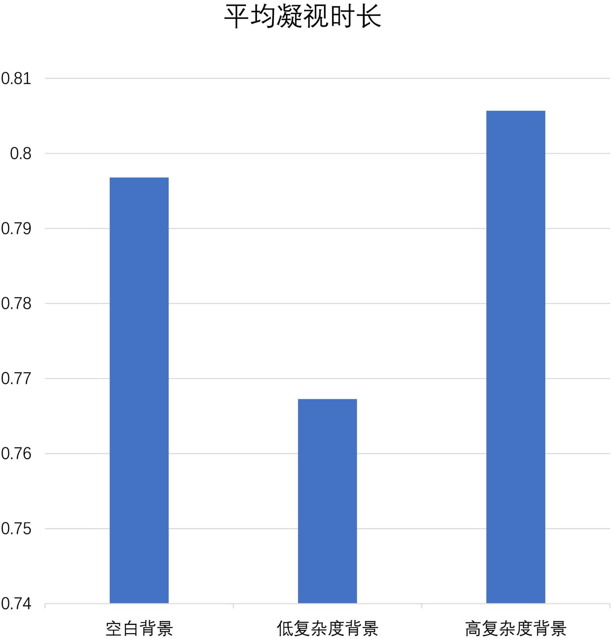 不同背景复杂度下受试者的平均凝视时间(秒)对比如图6所示。可以看出,随着背景复杂度的提升,所有受试者平均凝视时间的平均值无显著差异。
