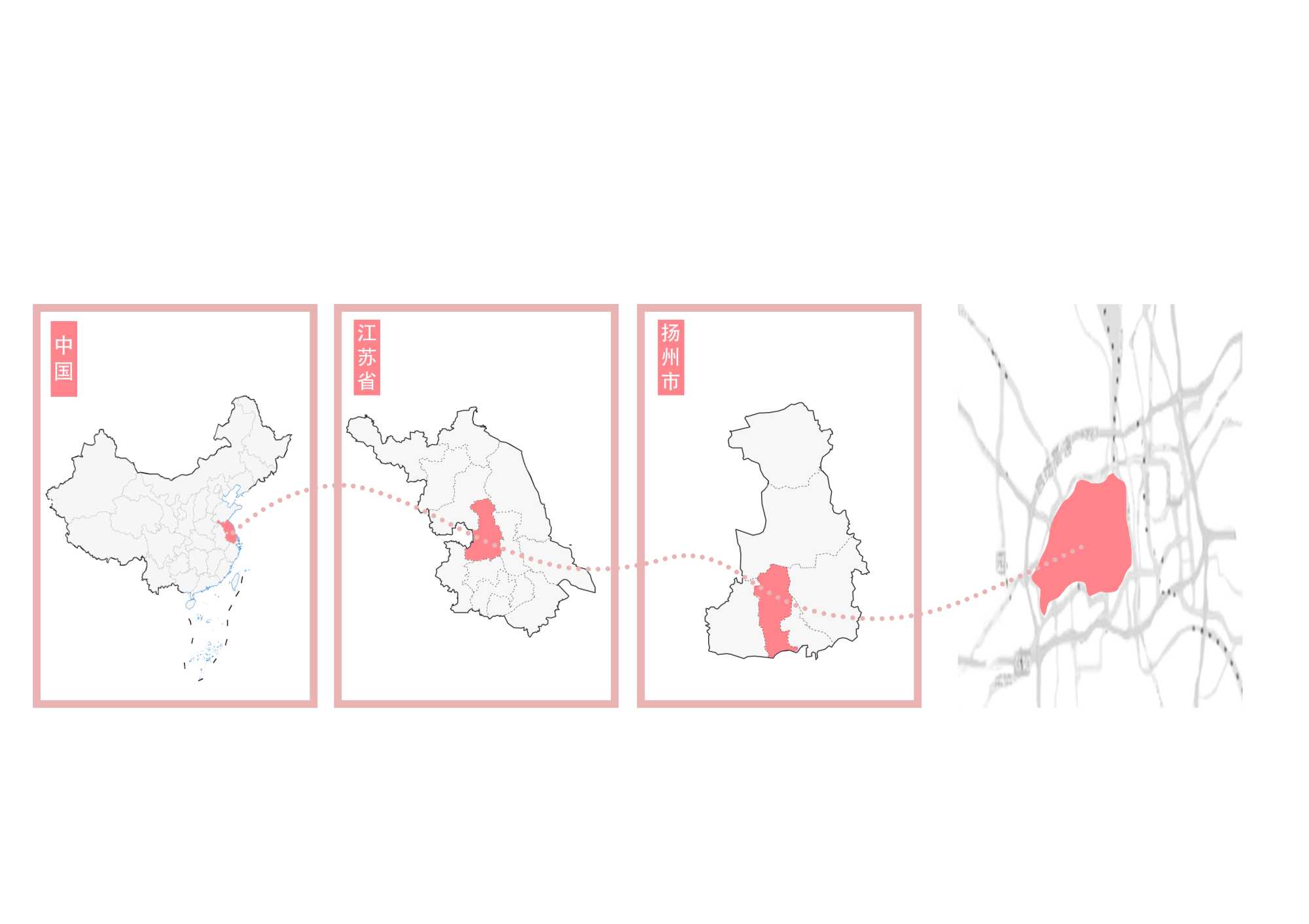 本项目选址位于江苏省扬州市邗江区的中心地段(如图7所示),地理位置优越。观察设计选址周边的整体地图,发现临近瘦西湖名胜景区,风景优美,为幼儿提供与自然共处的环境。北侧和东侧覆盖多个居民小区,为项目提供充足生源。南侧为主道路大虹桥路(如图8所示)。