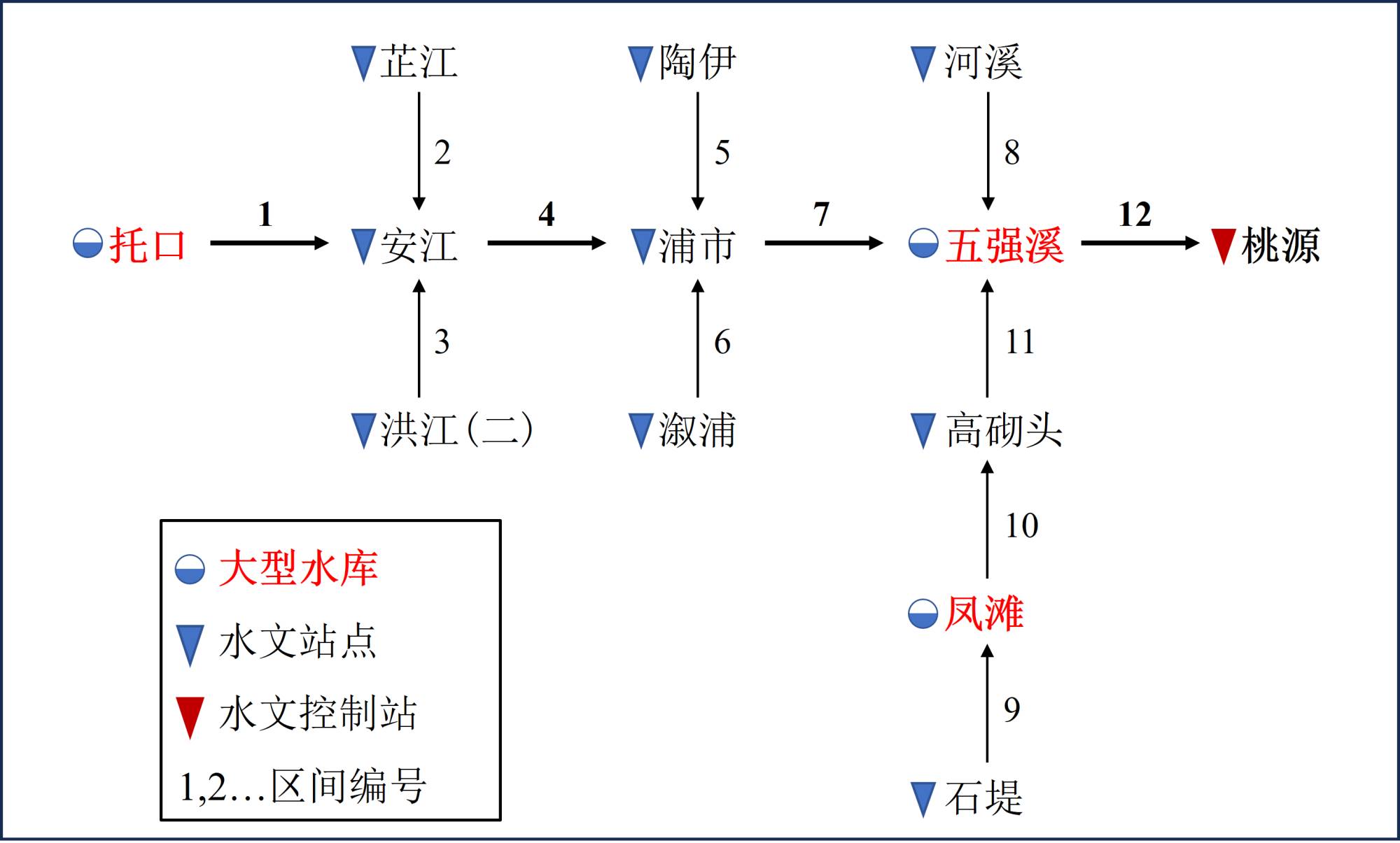 图1. 沅江水库群防洪调度模型拓扑结构图