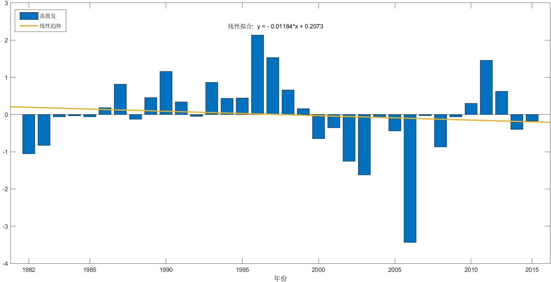 本文的气象数据采用“中国区域高时空分辨率地面气象要素驱动数据集”,由国家青藏高原科学数据中心(National Tibetan Plateau Data Center)提供。数据集针对13个涡度–协方差测量结果对建模结果进行了验证,得出的Nash-Sutcliffe效率值在0.72~0.94范围内[3],精度满足要求。本文通过R语言裁切得到1982~2015年辽河流域,共34年的月降水和蒸散发栅格数据。