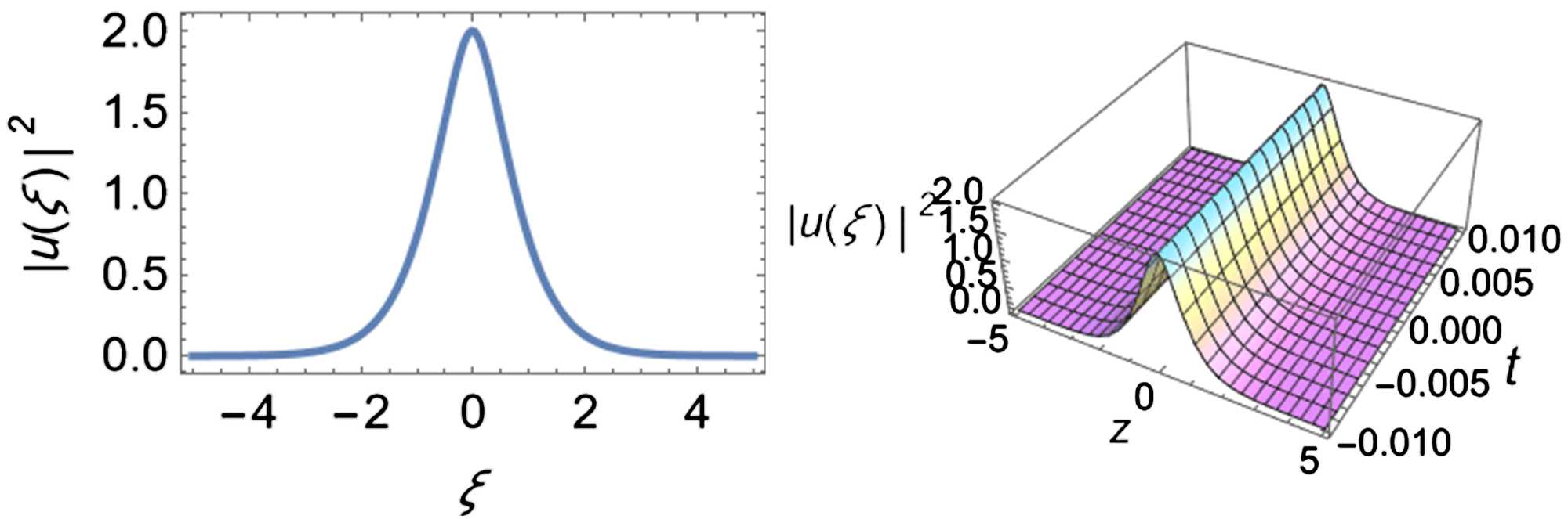 Figure 2. Soliton graphs of equation (1.1) are solved by homotopy analysis method. (a) Evolution curve of homotopy soliton solution with ξ; (b) A three-dimensional diagram of the relationship between homotopy approximate solutions with z and t